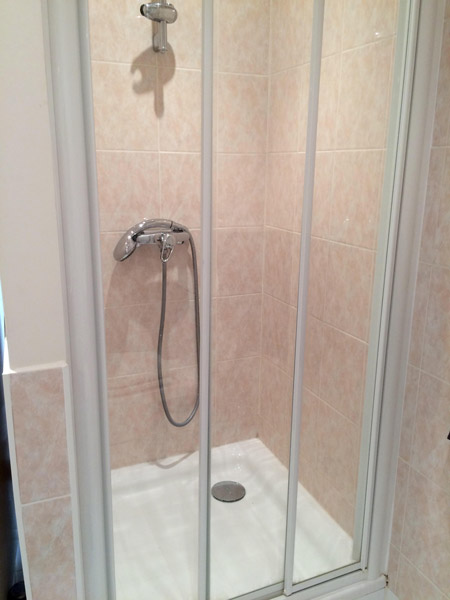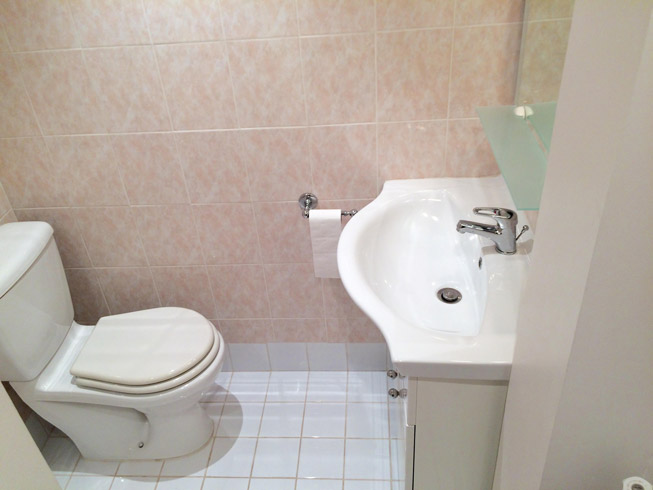 Lavabo, douche et WC (sèche-cheveux).